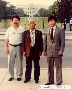 Rim, Jong Bae- Mr. Rim immigrated to the United States in 1973 and settled in Baltimore, Maryland. Mr. Rim, a Master promoted personally by Hapkido's founder, Grandmaster Choi, Yong Sul, participated in a couple of martial arts demonstrations soon after he arrived. A spectator at one of these demonstrations told Joe Sheya that Hapkido might be what he was looking for. Joe visited Mr. Rim to inquire about Hapkido. Communication was difficult, so this first meeting consisted of Mr. Rim demonstrating Hapkido on Joe. A lasting relationship developed from this unlikely beginning. For a while Joe was the only student, but gradually others joined the group. After Joe was promoted to black belt, he started teaching on his own and attracting more students. Mr. Rim had several black belt students at the time of Mr. Choi's visit in 1982. After the meeting in New York, Mr. Choi visited Mr. Rim in Maryland and worked out in the Dojang with Joe and his students. Mr. Choi was pleased to see his traditional method of instruction preserved and he posed with the school for a photograph.
